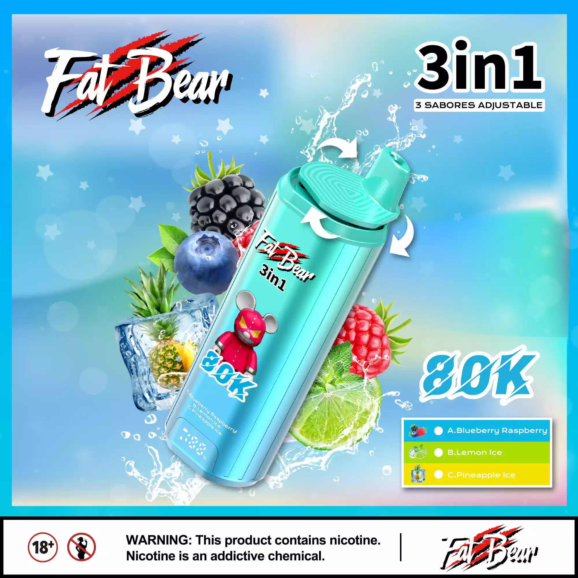 Aivono AIM FATBEAR 80K Verfügbare Geschmacksrichtungen (je 3 Aromen in einem Gerät)