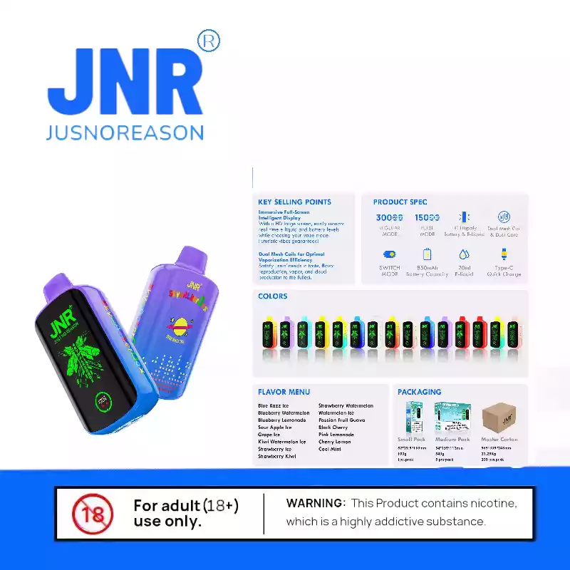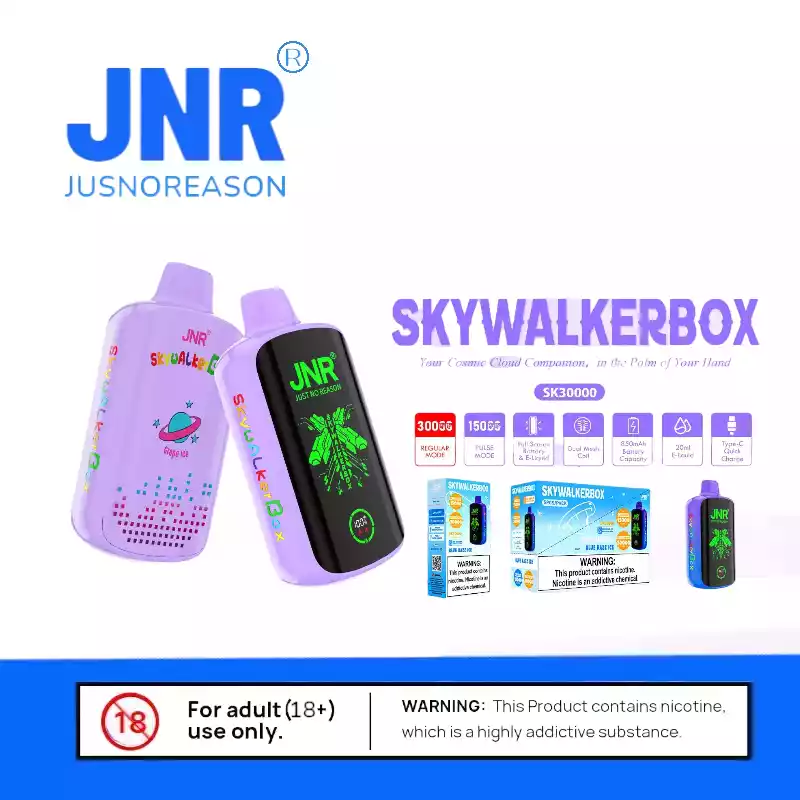 Die JNR Skywalker Box 21000 PUFF ist das, was moderne Dampfer heute wollen: Leistung, Komfort und satte Aromen – alles vereint in einem kompakten, wiederaufladbaren Gerät mit XXL-Power. Ganz gleich, ob du Einsteiger oder Vielnutzer bist – dieser Vape hebt dein Dampferlebnis auf das nächste Level.