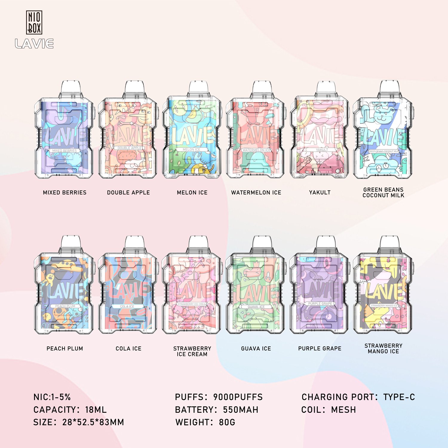 Lavie Nio 9000 Erhältliche Geschmacksrichtungen (12 Sorten)
